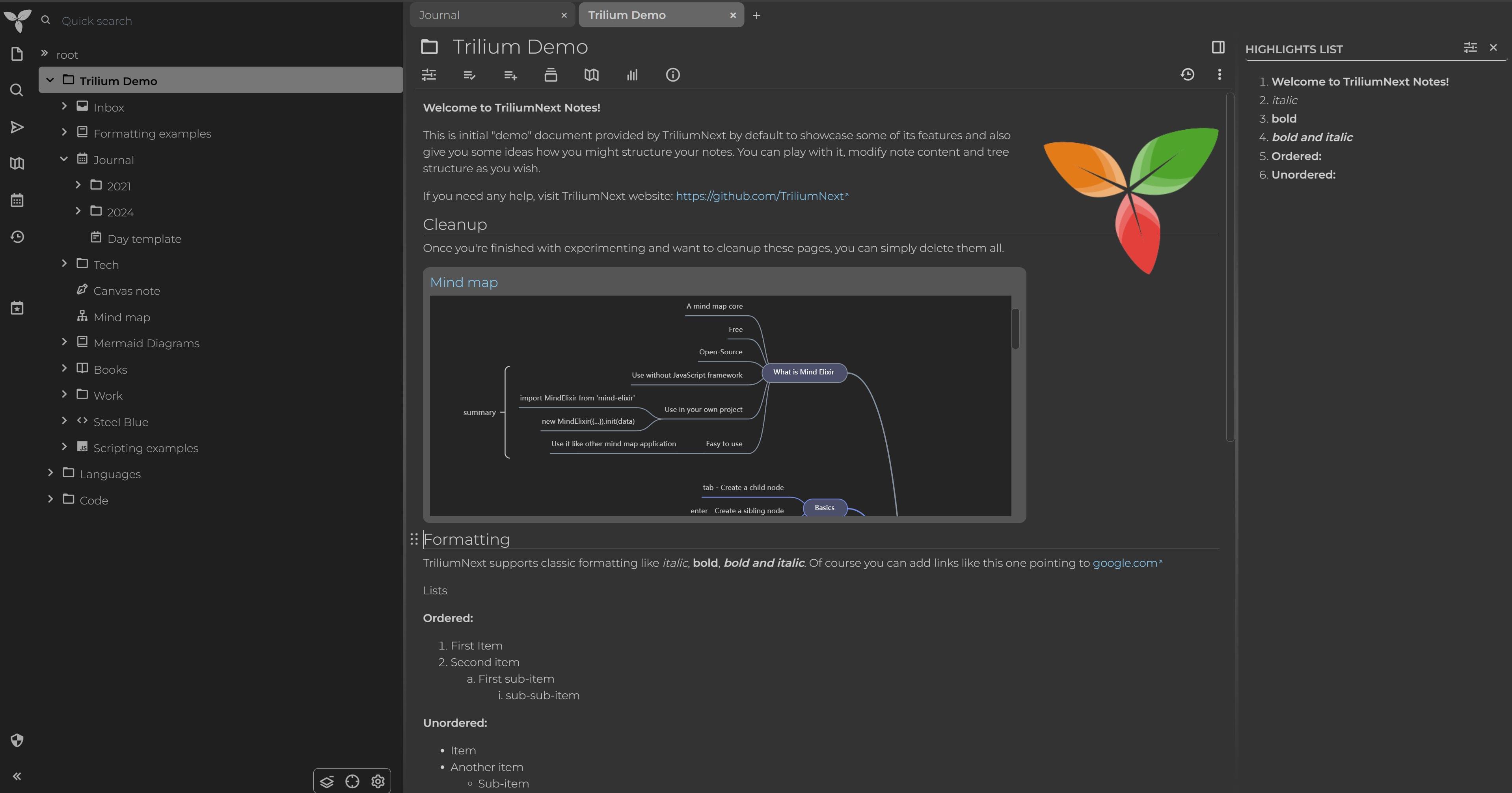 Trilium Notes 开源、跨平台的个人笔记管理软件,可以方便结构化的管理大量笔记,层级无限制,支持多种笔记类型,非常适合用来管理自己的日记、笔记、工作等信息。