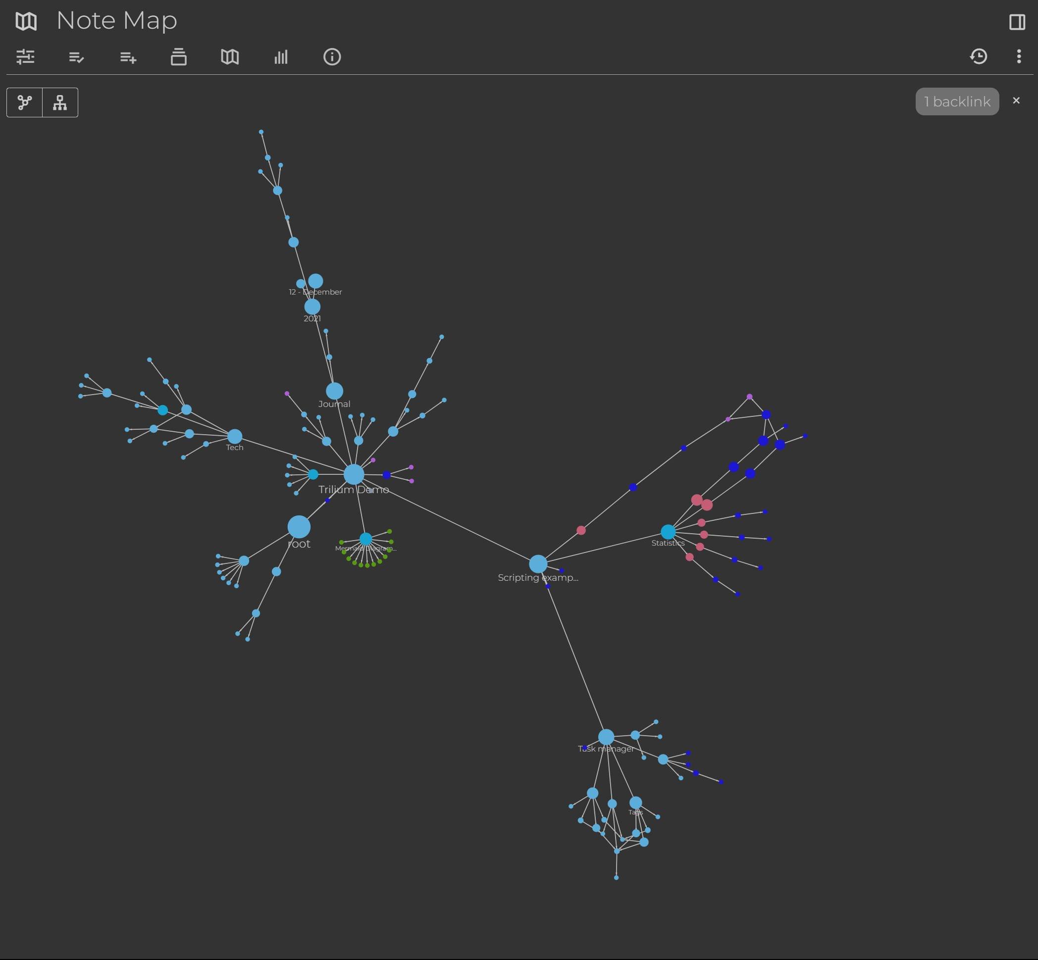 与笔记类型关系图类似,笔记关系图是自动生成的,代表各个笔记(节点)之间的关系